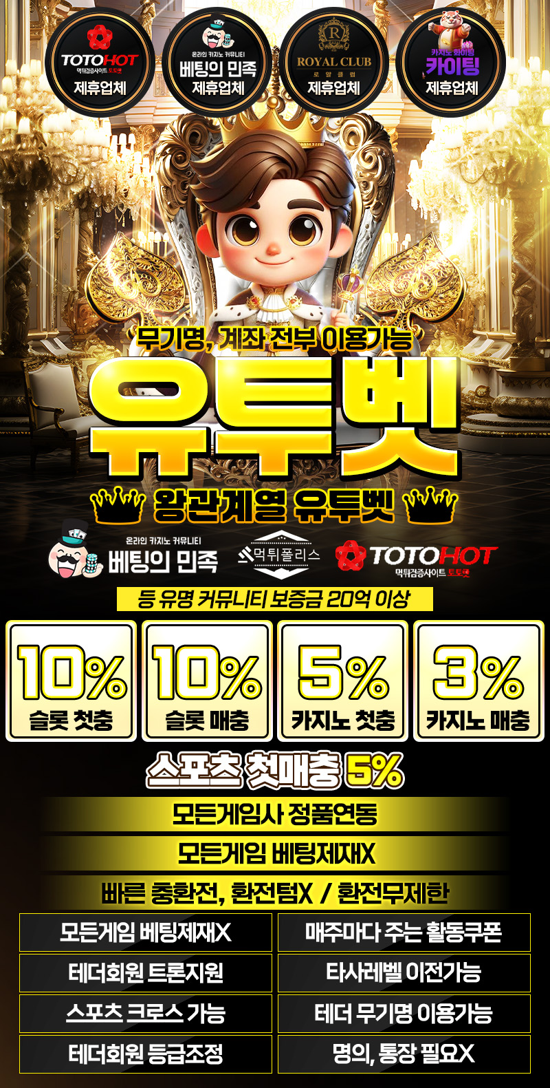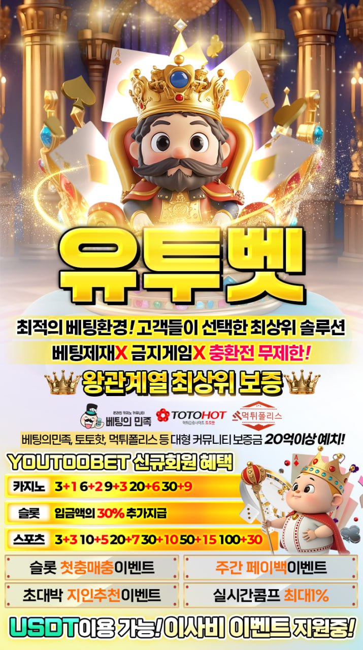 먹튀없는 메이저 사이트 유투벳 왕관계열 환전 1번 충환전 1번 각종 커뮤니티 보증금만 20억 예치