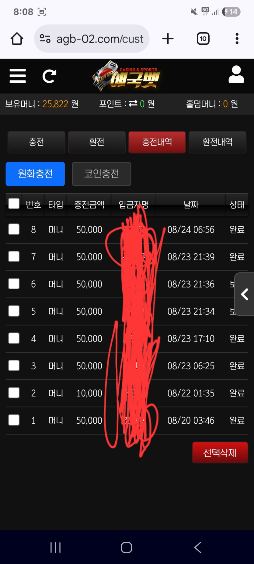 매일 같이 환전을 누룰때 마다 은행에 모니터링에 걸려서 환전이 지연 된다면서 길게는 24시간 정도 시간을 끌며 회원이 참지 못하고 배팅하여 모든 돈을 잃게 만듬