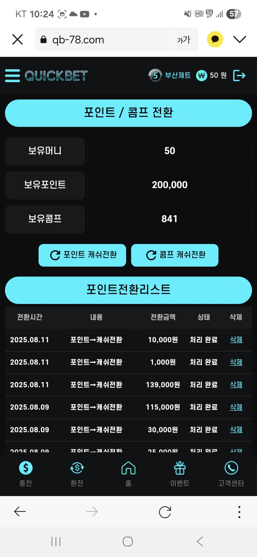 충전금 5백이상 매주 월요일