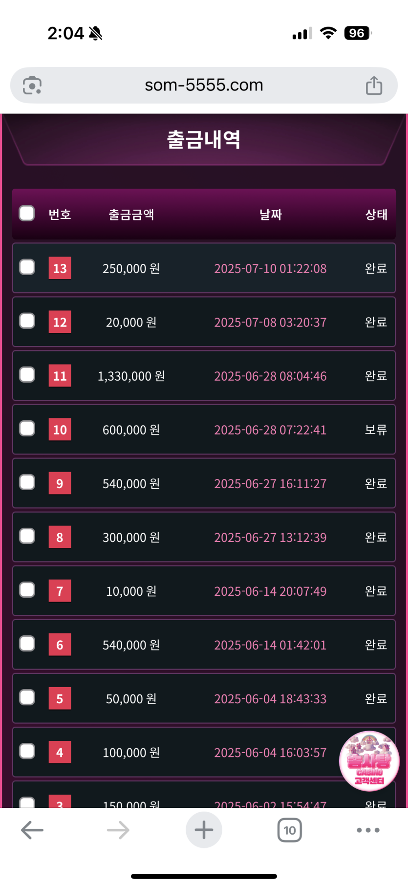 솜사탕 카지노 이용후기입니다